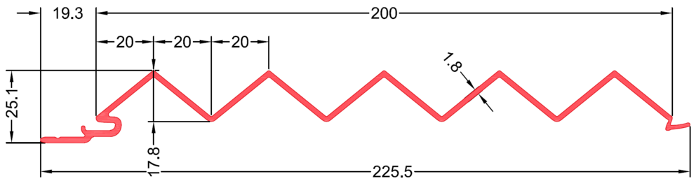 • Ukupna širina profila: 225.5 mm
