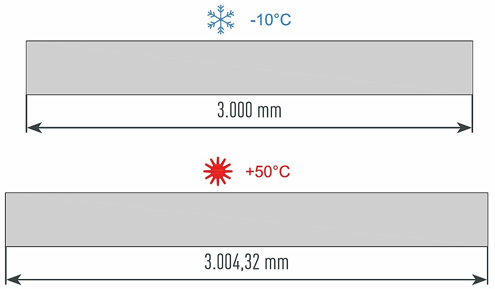 PREFA aluminijski ekstrudirani profili smiju se upotrebljavati samo na temperaturama između -50 °C i +80 °C. Zbog istezanja materijala uzrokovanog temperaturom obavezno obratite pozornost na raspored fiksnih i kliznih točaka. Kako bi se prilagodilo termičkom istezanju, u spoju profila potrebno je izvesti fugu čija širina ovisi o očekivanoj promjeni dimenzija. Preporuča se širina od najmanje 10 mm.