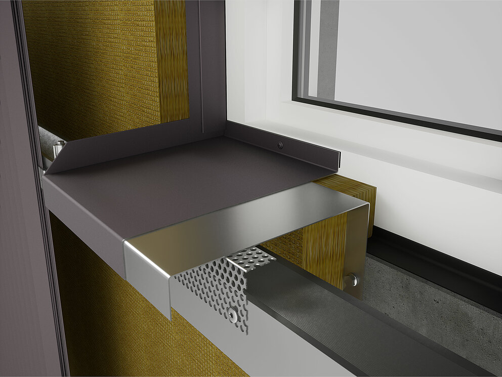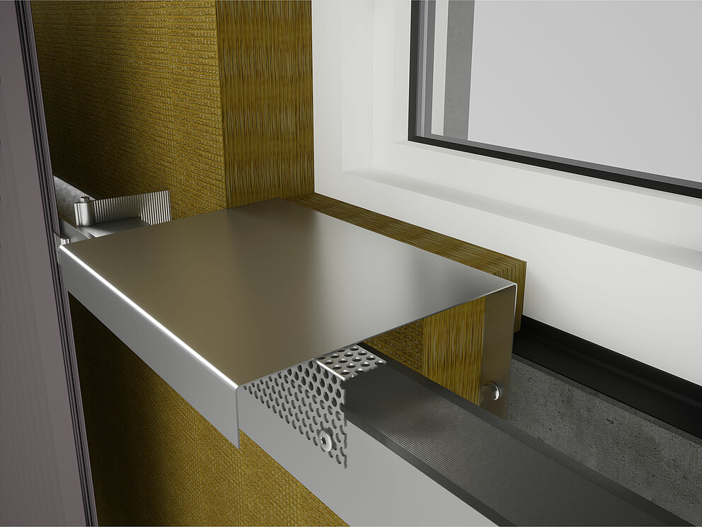 Prvi korak montaže opšava za prozor uključuje montažu perforiranog lima i držećih traka. Uvjerite se da nema nikakvih zapreka odvodnom otvoru za zrak sustava za prozračivanje.
