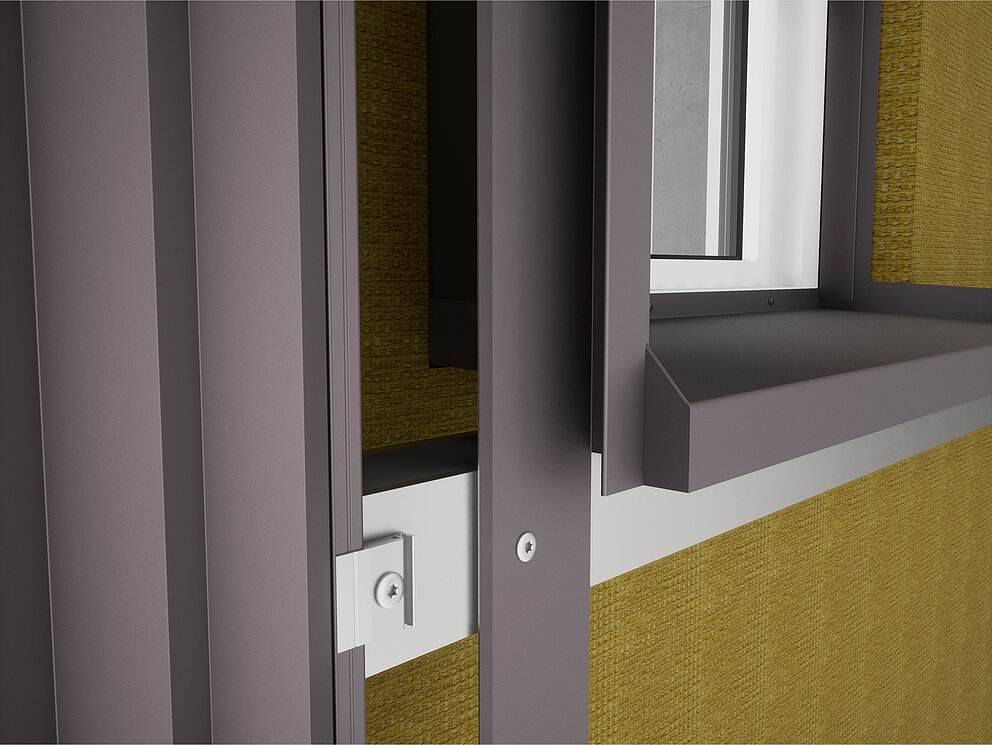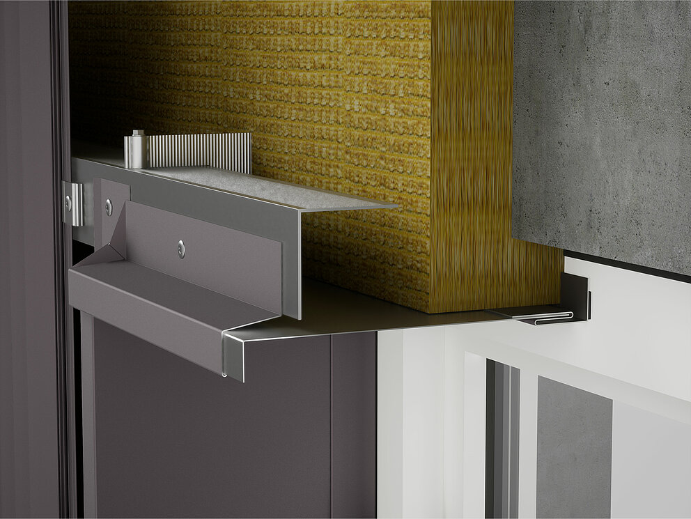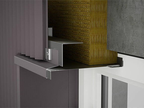Zatim kutne nosače za limenu špaletu pričvrstite vijcima na podkonstrukciju lijevo i desno od prozora. Istovremeno se utične lajsne za limenu špaletu i utična lajsna za natprozornik također pričvršćuju na okvir prozora ili zid.