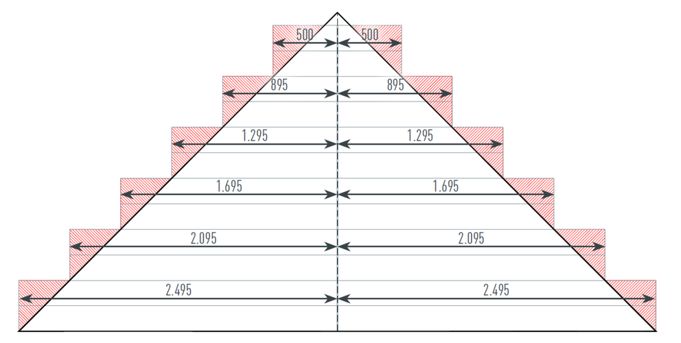 Kod polaganja s ravnomjernim pomakom i istom duljinom profila, preporuča se podijeliti površinu fasade s površinom fasadnih kazeta, fasadnih kazeta.X ili perforiranih fasadnih kazeta kako bi se dobio potreban broj komada.