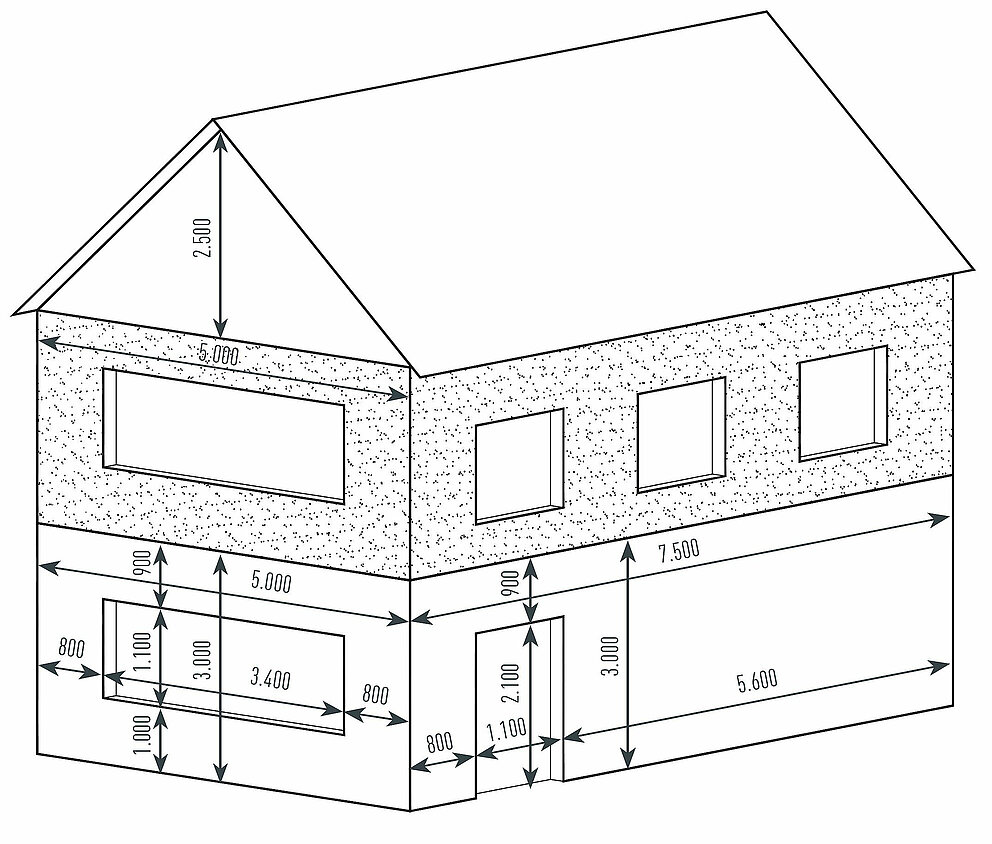 Prekidi kao što su npr. otvori za prozore < 1 m² su zanemarivi.