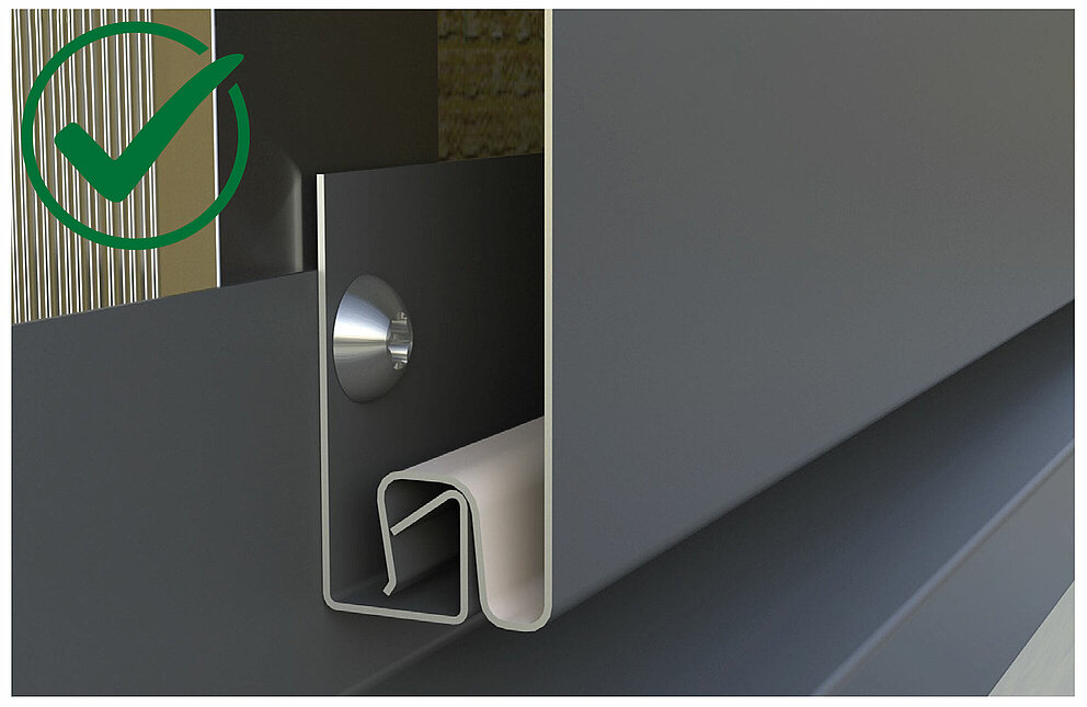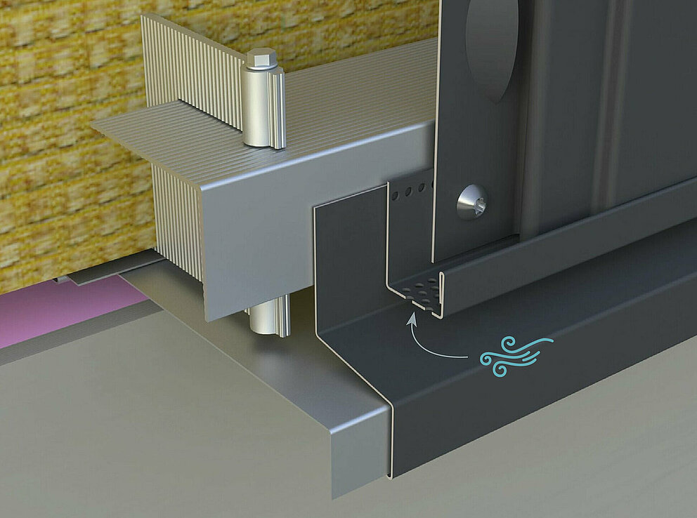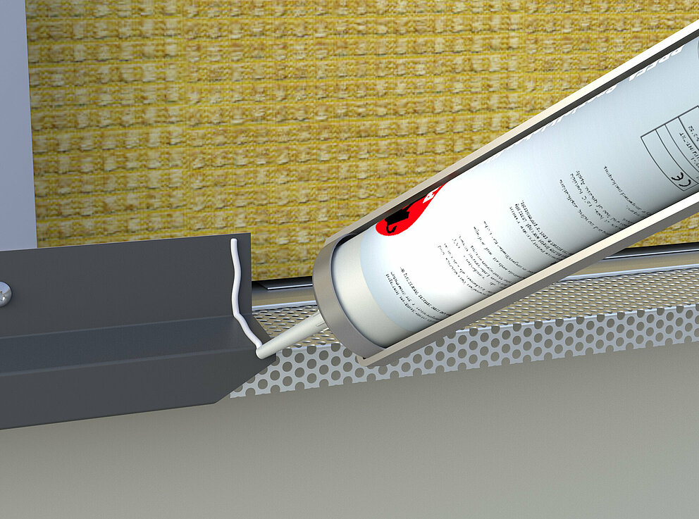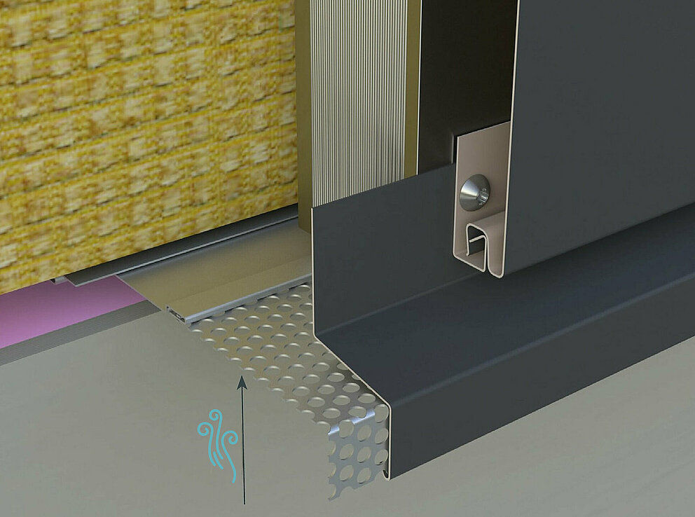 Prilikom uporabe perforirane blende i fasadne kazete sa završnim kantiranjem potrebno je pripaziti da se zadrži udaljenost između završnog kantiranja i perforirane blende od najmanje 5 mm. Ako završno kantiranje naliježe izravno na perforiranu blendu, presjek za dovod zraka nije dovoljan i prozračivanje ne funkcionira.
