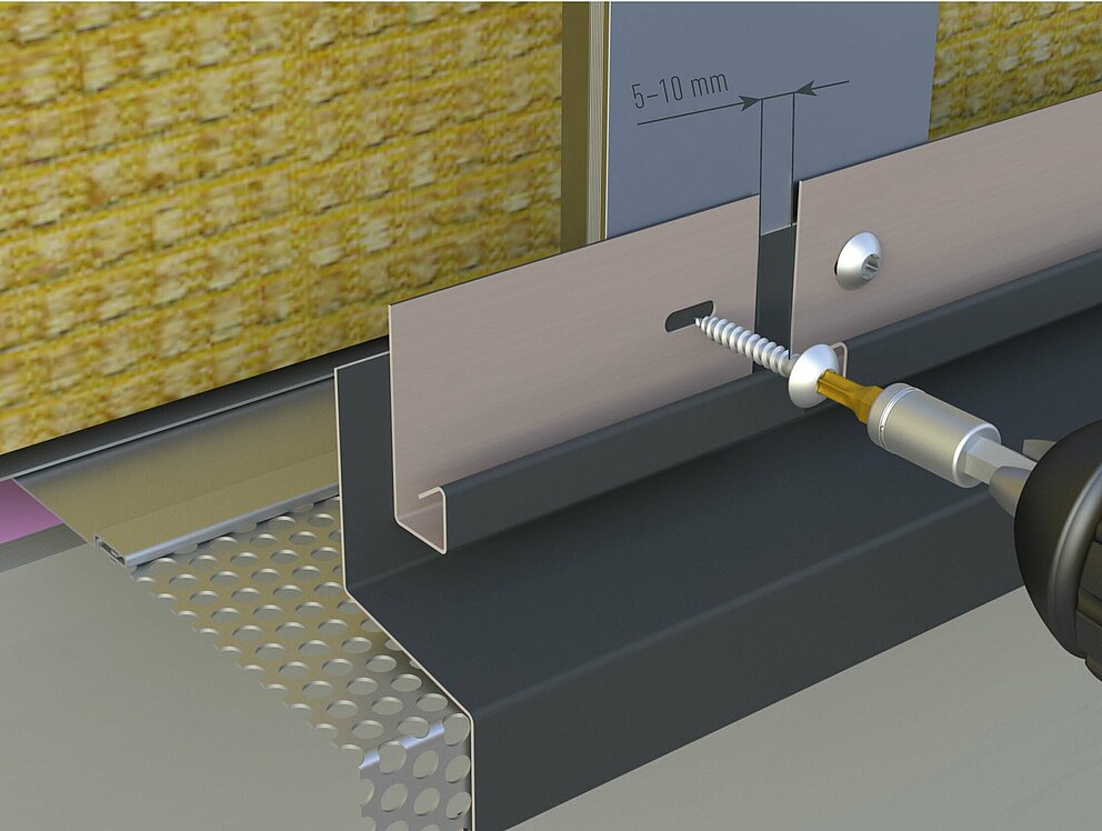 Kod početnog profila posebno pripazite da položaj vijaka ne bude predubok kako bi se fasadne kazete, fasadne kazete.X i perforirane fasadne kazete mogle umetnuti i montirati bez problema.