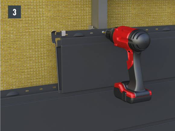 • Postavite fasadnu kazetu s prethodno montiranom fugom u skladu sa smjernicama za postavljanje fasadnih kazeta i pričvrstite ga na potkonstrukciju (slika 3).