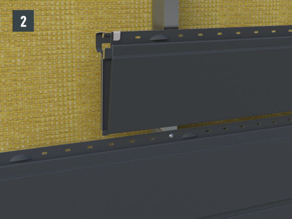 • Učvrstite PREFA fugu na stražnjoj strani fasadne kazete pomoću prethodno savijenog jezička (slika 2).