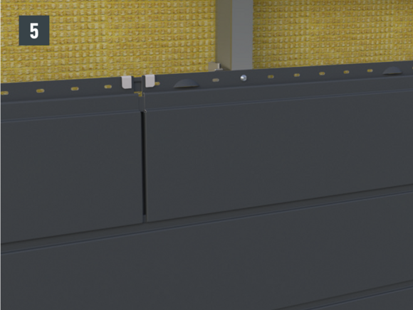 • Učvrstite jezičak PREFA fuge na stražnjoj strani fasadne kazete (slika 5).