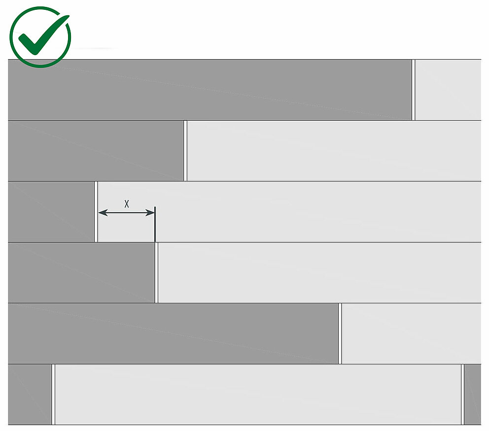 PREFA preporučuje da je najmanji iznos pomaka (x) udaljenost koja odgovara ugradbenoj širini (BB) (npr. za fasadnu kazetu 138×0,7 mm = najmanji pomak 138 mm):