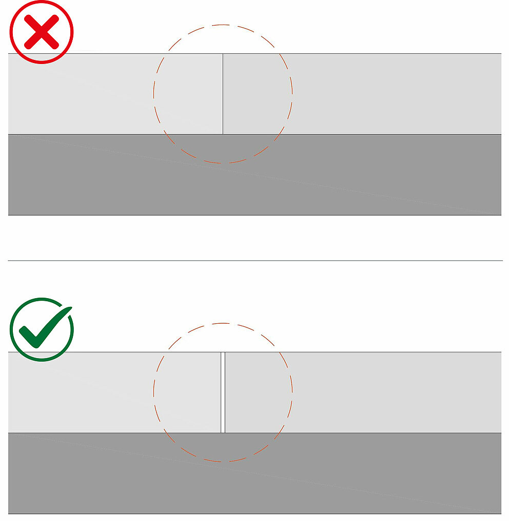 Nije moguća montaža PREFA fugi neposredno jedne iznad druge: