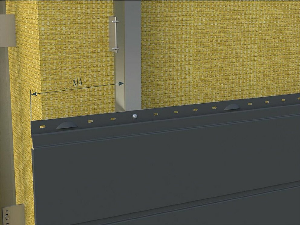 Pridržavajte se preporučenog maksimalnog izbočenja fasadnih kazeta, fasadnih kazeta.X i perforiranih fasadnih kazeta u skladu sa statičkim zahtjevima za nepodržane kutove zgrade / u rubnom području od najviše jedne četvrtine udaljenosti potkonstrukcije.