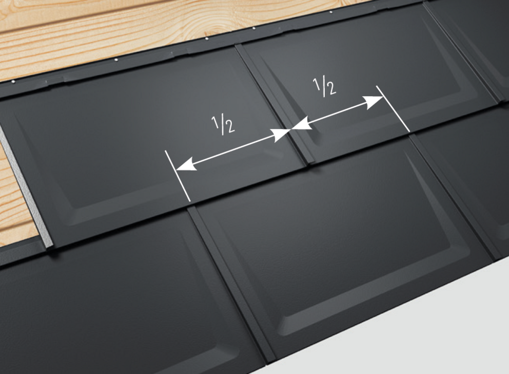Poravnajte krovnu ploču R.16 prema vezivanju odnosno oznaci na početnoj traci ili prethodnom redu.