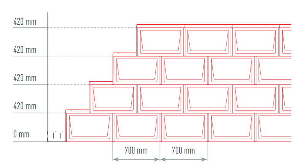 Vertikalno vezivanje: 700 mm (svaki drugi red pomaknut za 350 mm)
