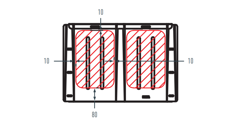 Ako montirate nešto na fasadu (kao npr. svjetiljke), prilikom montaže obratite pozornost na dopušteno područje montaže krovne ploče. Ako pridržavanje područja montaže nije moguće, potrebno je ufalcati podložnu ploču.