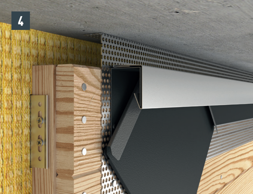 Za pravilno prozračivanje fasade potrebno je na gornjem završetku projektirati otvor za odvod zraka. Ugradite perforirani lim s presavijenim dijelom pod 90° na otvor za odvod zraka (npr. donji dio krova) kako biste postigli veću krutost.