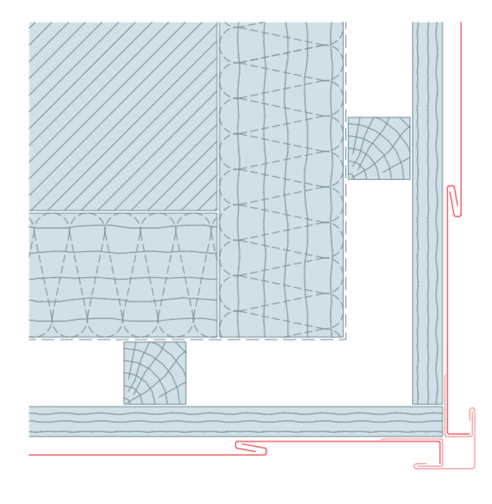 Unutarnji i vanjski kutevi se uglavnom izvode pomoću dva C-profila i kutnog elementa. Provjerite je li montaža C-profila izvedena potpuno okomito i dopušta li istezanje te jesu li fiksne i klizne točke raspoređene.