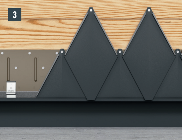 Pričvršćenje svakog malog romba vrši se izravno putem prethodno izbušene rupe za pričvršćenje, pomoću priloženog čavla za krovnu ljepenku 2,8/25.