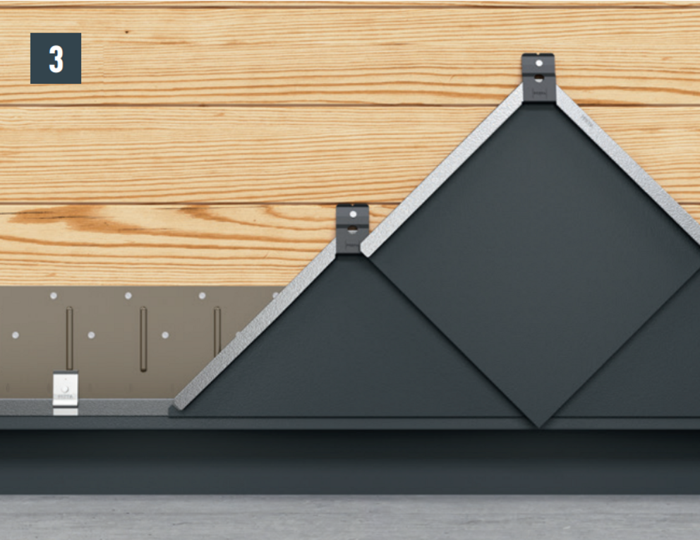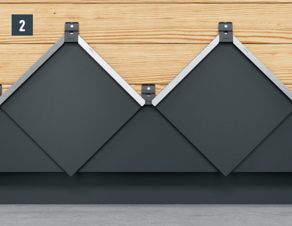 Pričvršćenje svakog zidnog romba 29 × 29 vrši se učvršćivačem i priloženim čavlom za krovnu ljepenku 2,8/25.