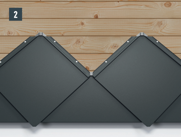 Pričvršćenje svakog zidnog romba 44 × 44 vrši se izravno putem prethodno izbušenih rupa za pričvršćenje, pomoću priložena četiri čavla za krovnu ljepenku 2,8/25.