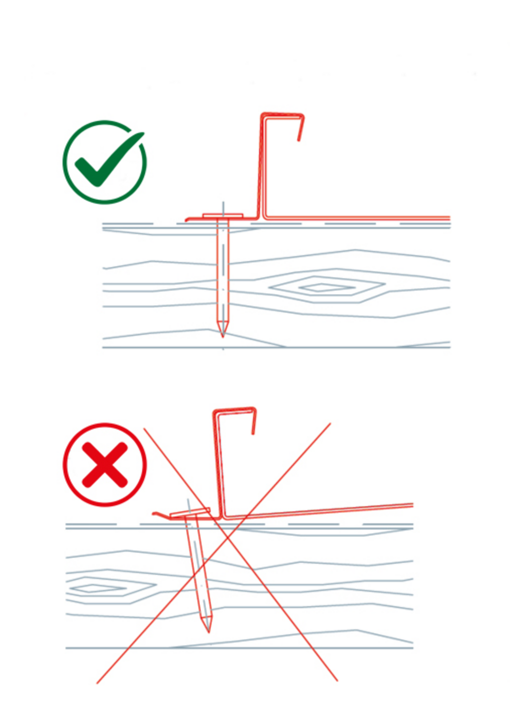 Pri uporabi debljih razdjelnih slojeva eventualno je potrebno upotrijebiti duže čavle ili vijke.