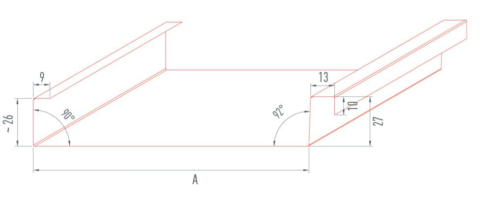 Kutovi i dimenzije profila koji se promatraju prikazani su na donjoj slici i moraju se strogo poštivati. Promjene u dimenzijama profila mogu dovesti do savijanja traka i nepravilnog polaganja!