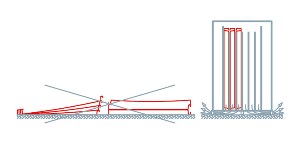 Pri jačem vjetru osigurajte od pada otvorene jedinice ili limene dijelove. Kartonske ambalaže postavljene na krovu zaštitite od kiše pokrovnom ceradom. Skladištenje se mora odvijati na ravnoj površini. Skladištenu robu treba skladištiti zaštićenu i suhu.
