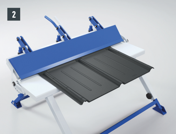 PREFA uređaj za izradu utora i PREFA stol za savijanje (slike 1 i 2) omogućuju jednostavnu i brzu obradu ploča na sljemenskim, grebenskim i spojnim limovima.