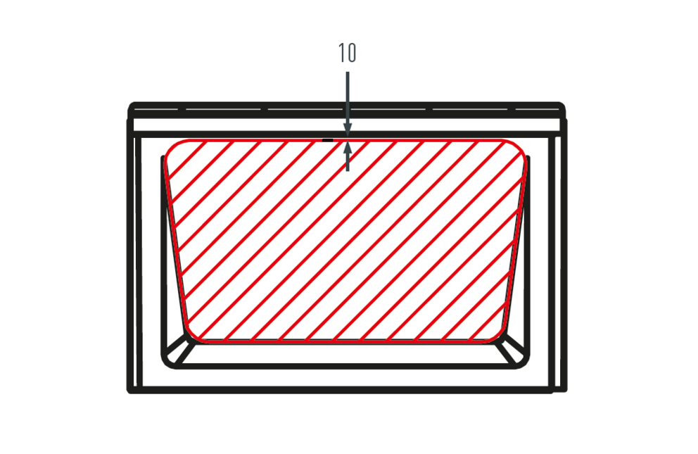 Pri montaži krovnog dodatnog pribora pazite na dopušteno područje montaže na krovnim pločama R.16. Slika u nastavku pokazuje područje montaže za dodatni pribor na stopama. Za drugi dodatni pribor mogu biti definirana različita područja montaže.