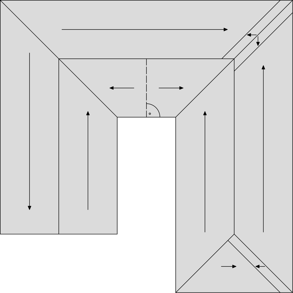 U području grebena i uvala smjer pokrivanja određen je neophodnim preklopom.