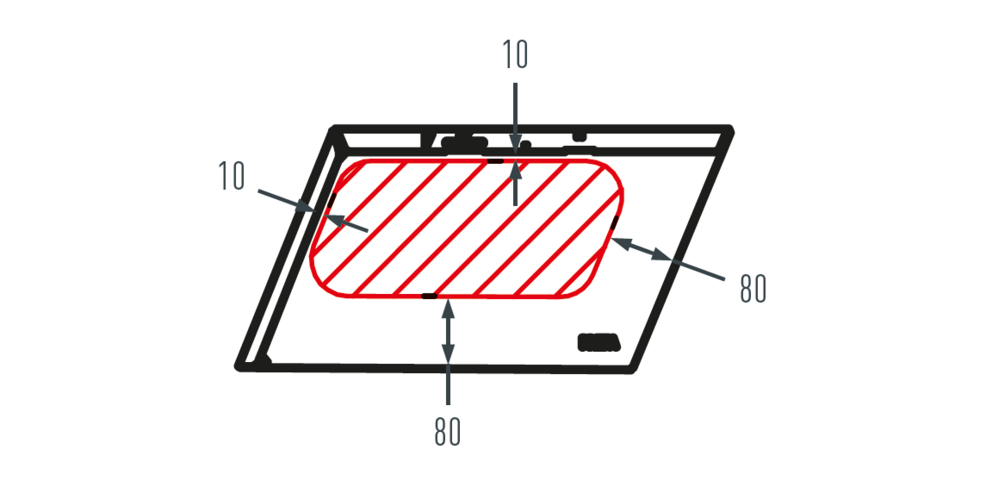 Pri montaži krovnog dodatnog pribora pazite na dopušteno područje montaže na krovnim šindrama. Slika u nastavku pokazuje područje montaže za dodatni pribor na stopama. Za drugi dodatni pribor mogu biti definirana različita područja montaže.