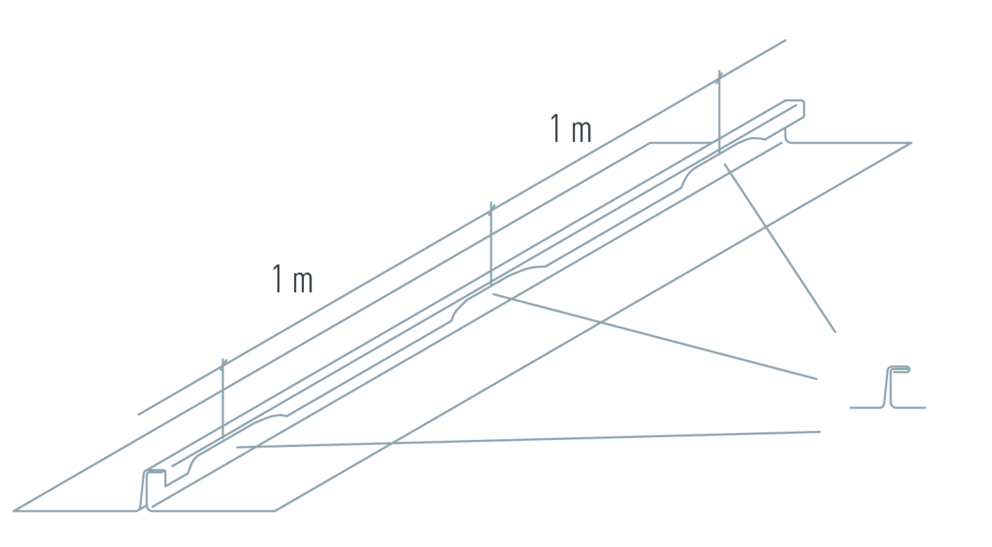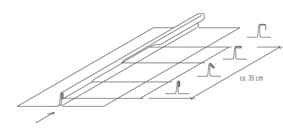 Položena ploča se steže po cijeloj dužini trake - patent kliještima (vidi sliku 1) na udaljenosti od oko 1,5 - 2,0 m (vidi sliku 2). Na ovaj način zajedno pritisnete savijene rubove obje ploče pod 90 °.