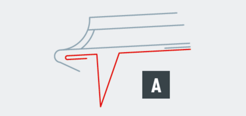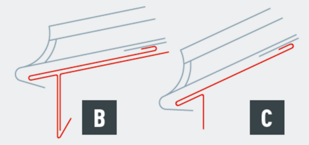 Početna traka (traka strehe) debljine najmanje 1,0 mm (npr. sl. A). Početna traka (traka strehe) debljine najmanje 0,7 mm s limenom pločom debljine najmanje 0,8 mm (npr. sl. B).