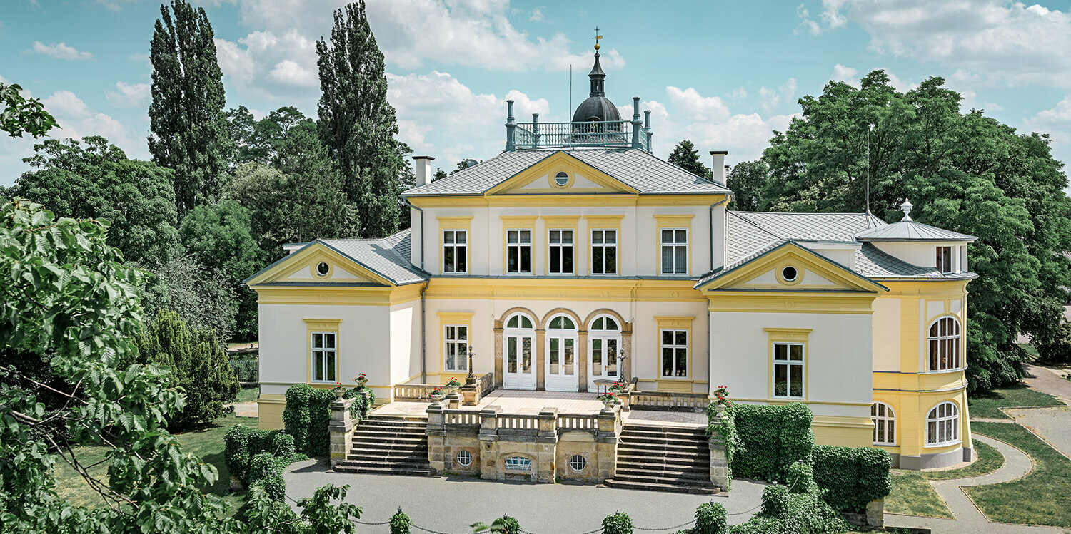 Ovdje se susreću sadašnjost i budućnost: dvorac je potpuno renoviran i nanovo prekriven PREFA krovnim rombovima 29 × 29 u P.10 svijetlo sivoj boji. Sada ga je moguće iznajmiti za vjenčanja, konferencije, okupljanja i zabave. Čitavi kompleks sastoji se od velikog dvorišta s konjušnicama, štalama, prekrasnom baroknom crkvom sv. Klimenta, koja je jedan od najvažnijih baroknih spomenika u Dobřenicama, i drugih povijesnih građevina. Okolica Dobřenice ima mnogo toga za ponuditi ljubiteljima prirode, bilo da preferiraju vožnju biciklom, jahanje ili igranje golfa.