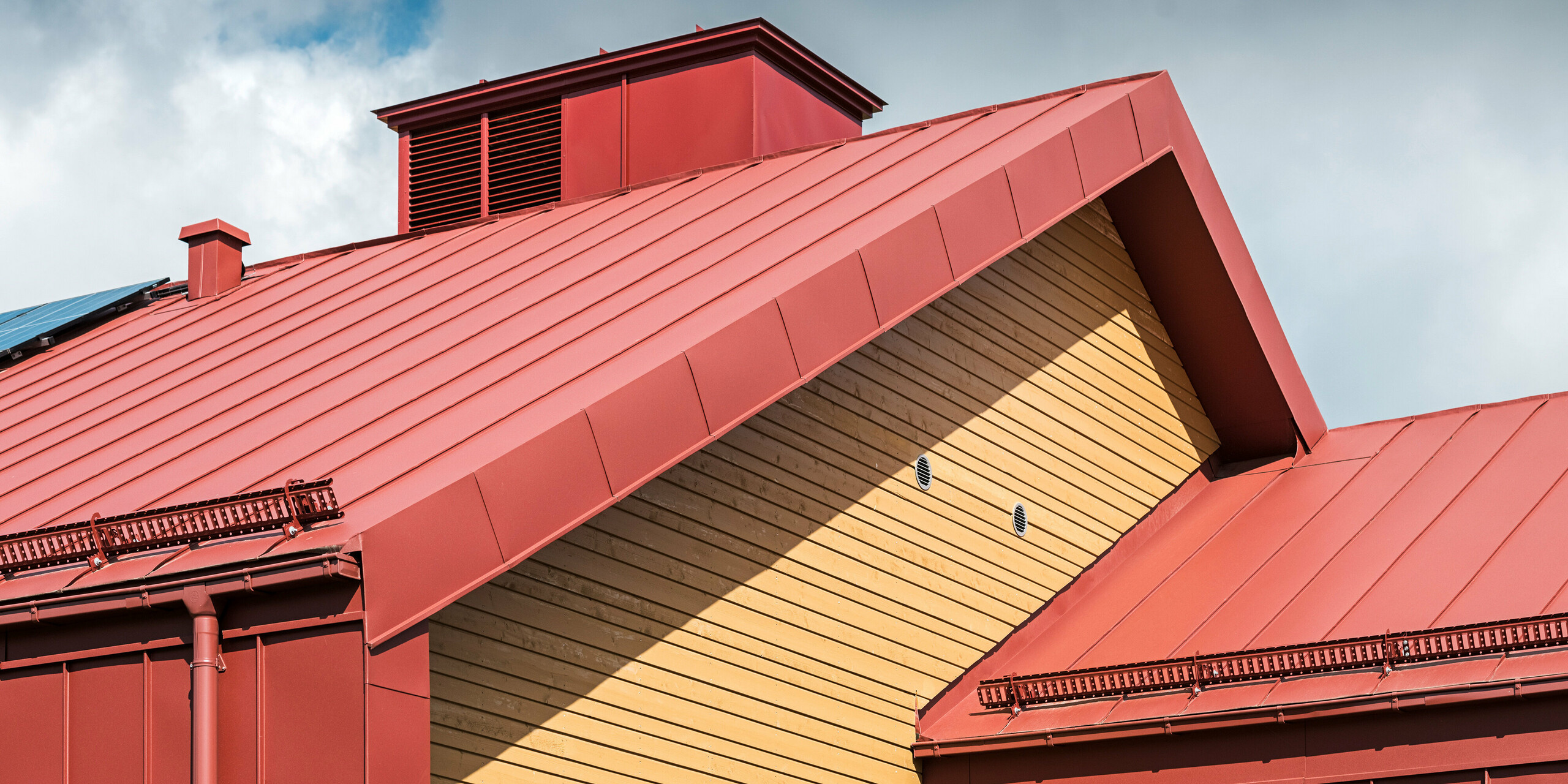 U skladu s krovom i fasadom, sustav odvodnje također je od PREFA materijala u oksid crvenoj boji. Veliki fotonaponski sustav na krovu dodatno opskrbljuje zgradu energijom iz obnovljivih izvora.